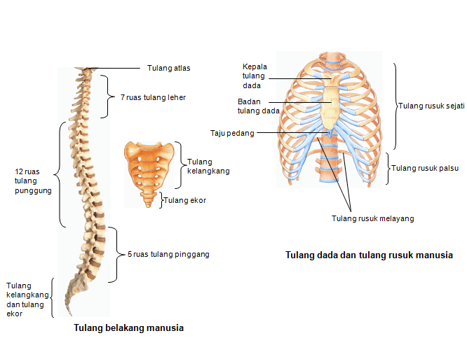 B) tulang badan, dilekati 7 pasang tulang rusuk sejati. Sedangkan pada bagian rangka badan bagian depan tulang tulang rusuk melekat ke tulang dada. Hal ini sedikit cembung di depan dan belakang cekung, luas atas, berbentuk seperti "t", menjadi menyempit pada titik di mana manubrium bergabung. Pada tulang gelang bahu merupakan bagian rangka manusia yang terletak di pangkal humerus. Gambar tampak samping dan tampak depan no.nama tulangjumlahlatinindonesia1.os. tulang dan rangka learn with flashcards, games, and more — for free. Vertebrta thoracal 5 ruas tulang pinggang : Rangka tulang belakang manusia terdiri atas 7 ruas tulang leher (servik), 12 tulang punggung (toraks), 5 ruas tulang pinggang (lumbar), dan koksigen ( tulang ekor 4 ruas berfusi menjadi 1). tulang rusuk manusia berjumlah 12 pasang, bentuknya pipih, terdiri dari tiga jenis yaitu : tulang ini terbentuk dari tulang rawan 5 ruas tulang punggung 4. Melindungi organ tubuh bagian dalam (contoh: tulang panggul, terletak di ujung bawah tulang belakang.